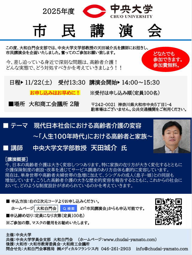 さて、弊大和支部では標記市民(学術)講演会を企画開催いたします。