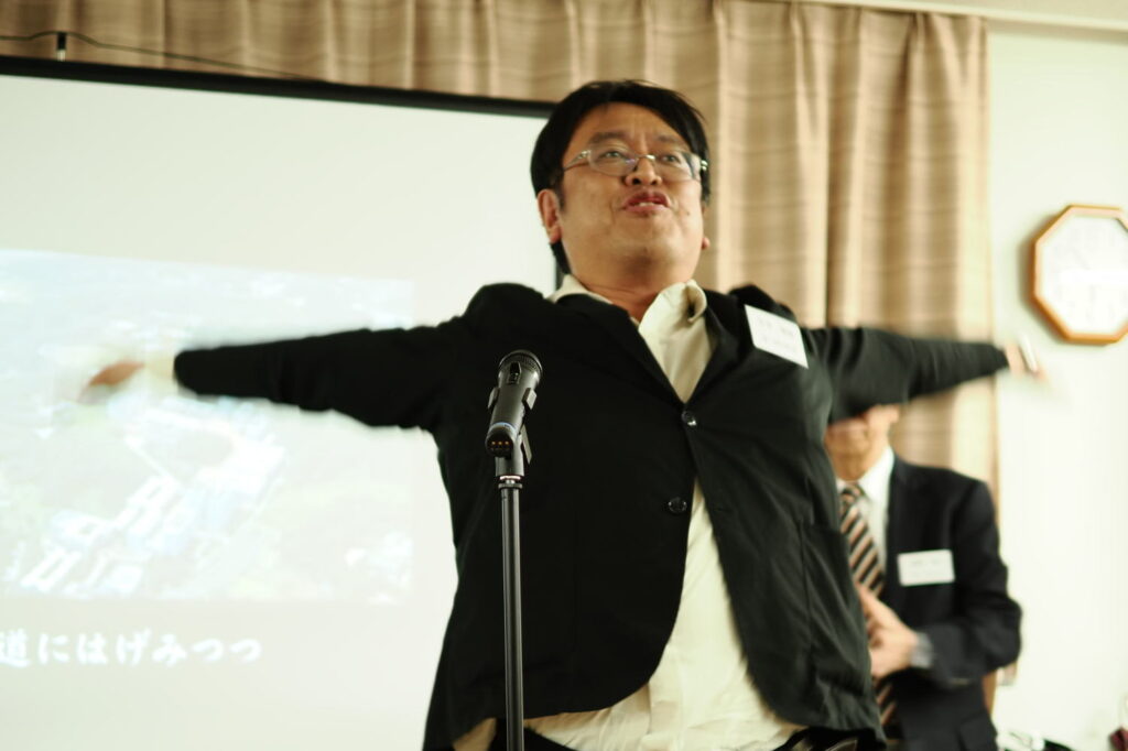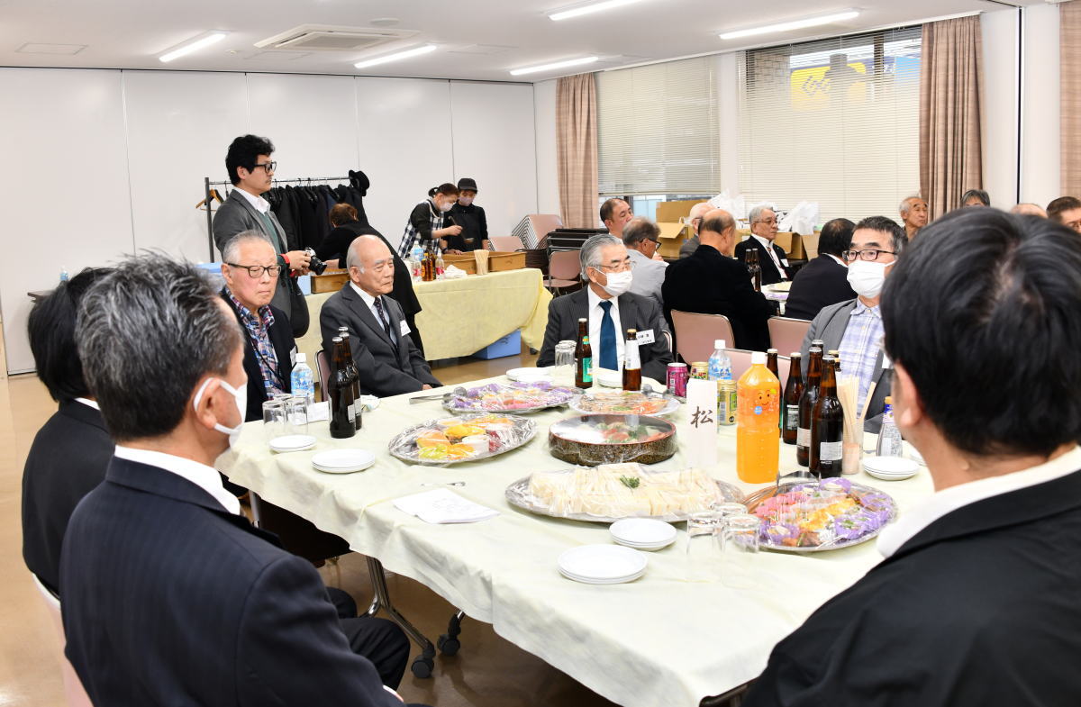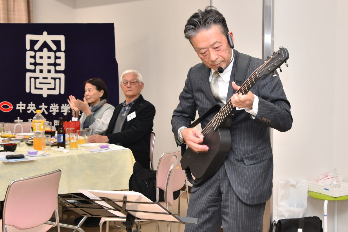 - ギター演奏会と合唱:梅原啓一幹事長によるギターの弾き語りに合わせ、「上を向いて歩こう」や「白いブランコ」などを全員で合唱