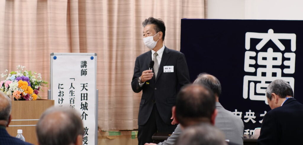 中央大学文学部教授の天田城介講師をお招きし 、現代社会の喫緊のテーマである「現代日本社会における高齢者介護の変容~『人生100年時代』における高齢者と家族~」についてご講演いただきました 。
